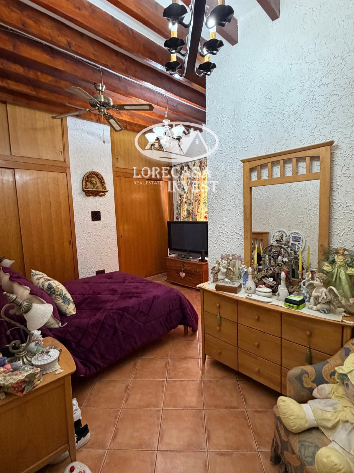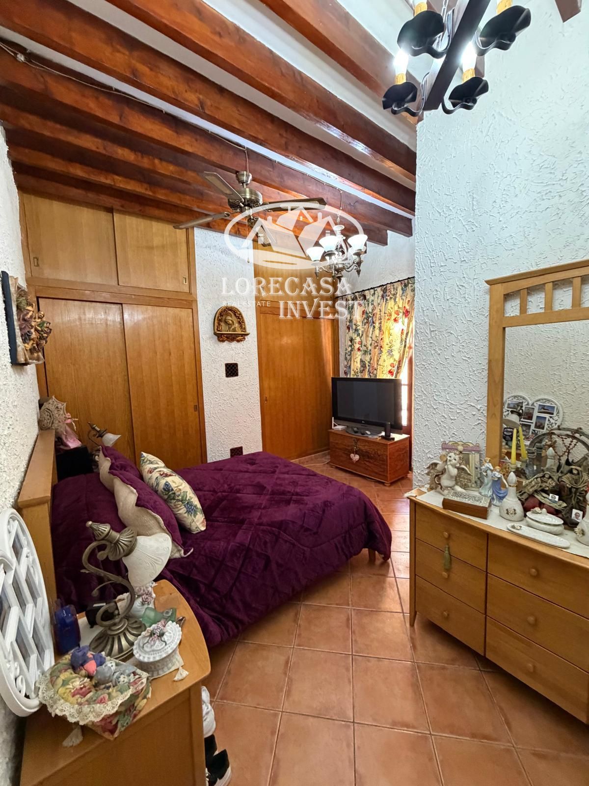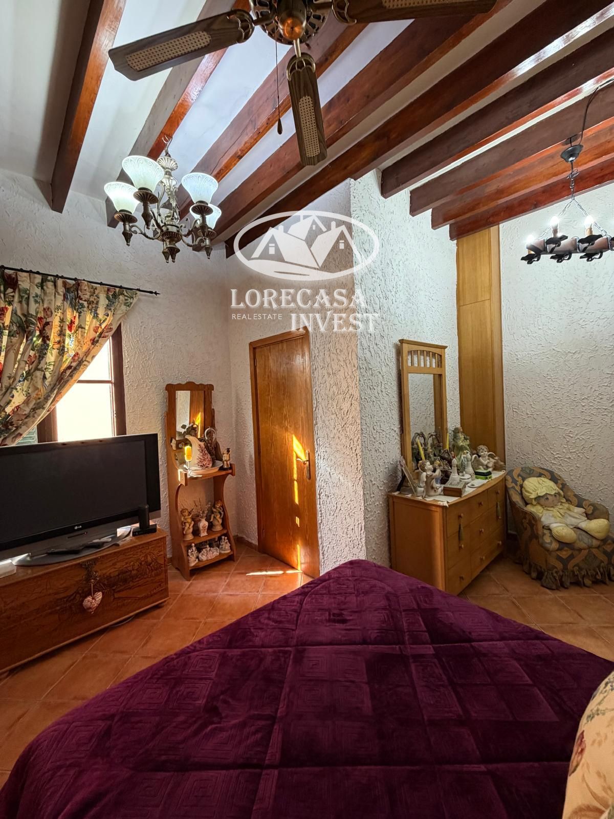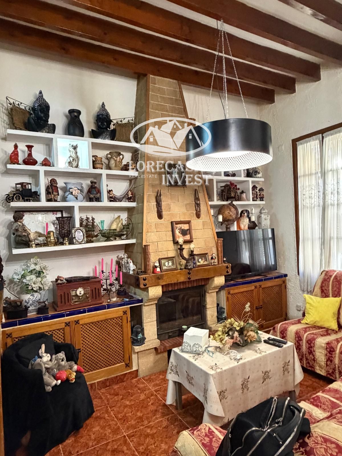 Conserva el encanto tradicional mallorquín con vigas vistas y chimenea.