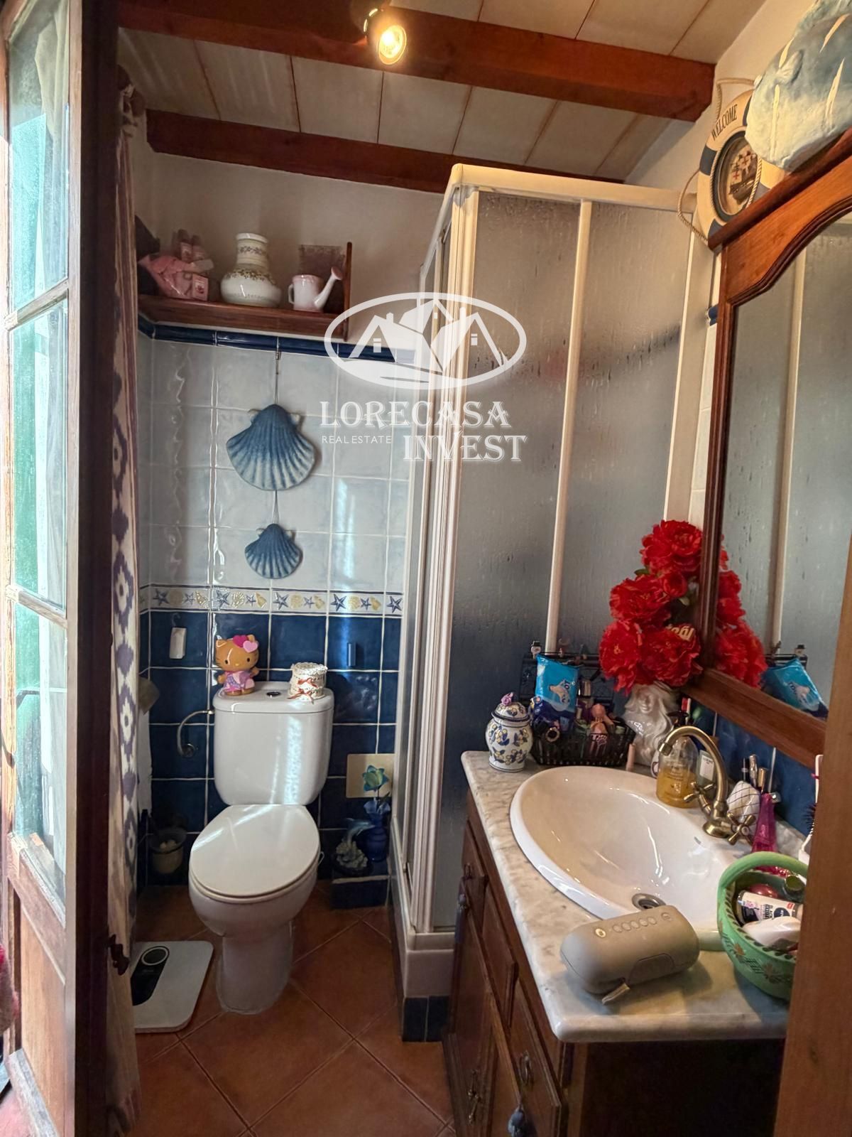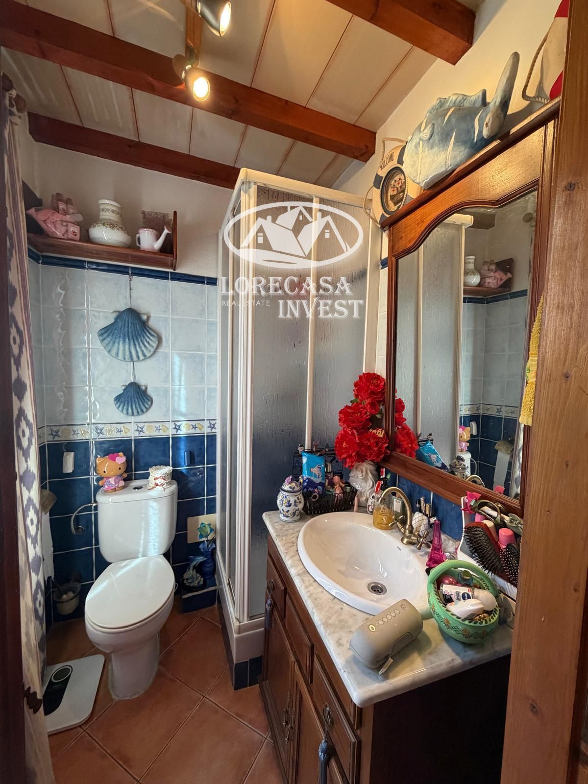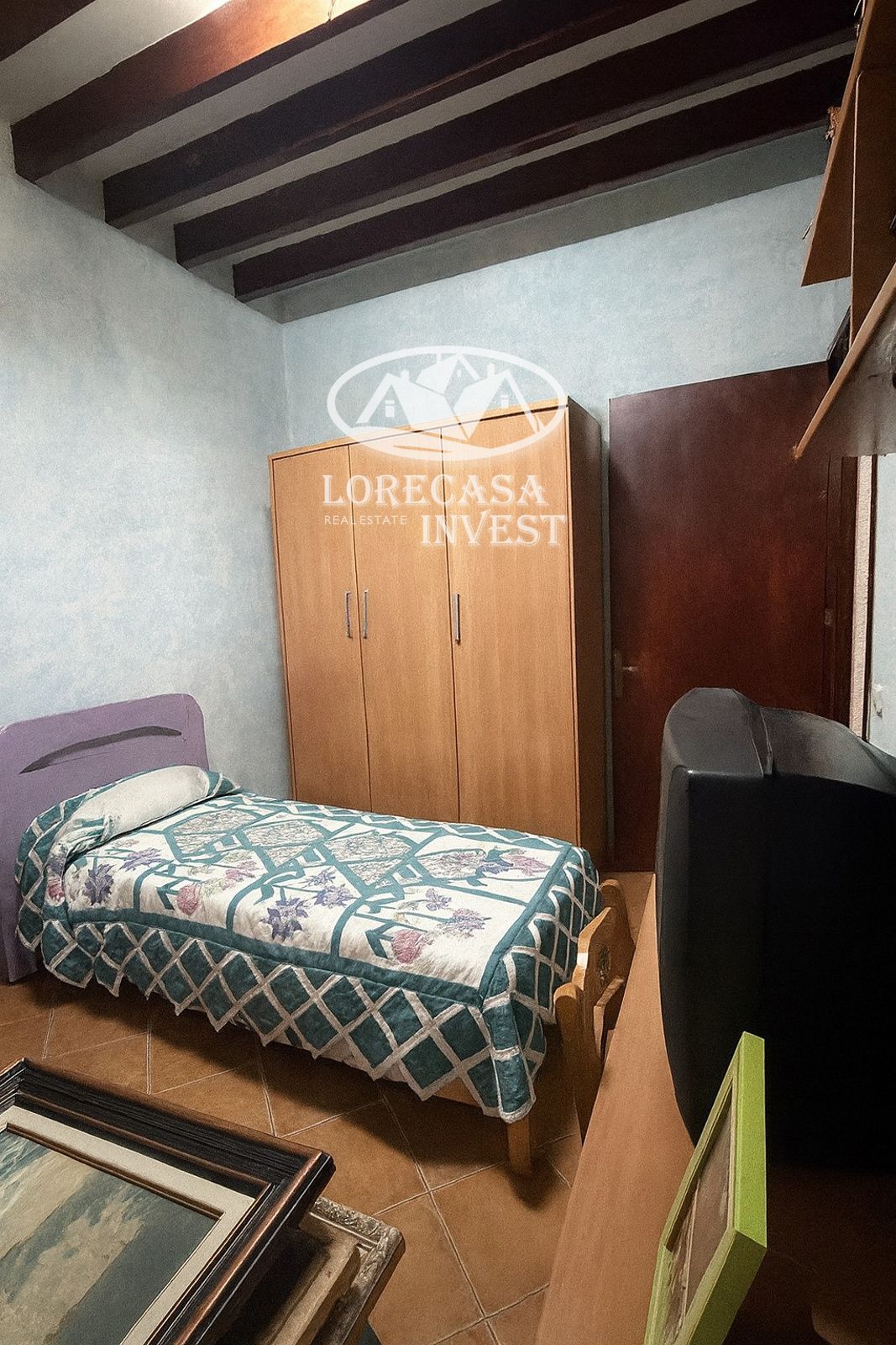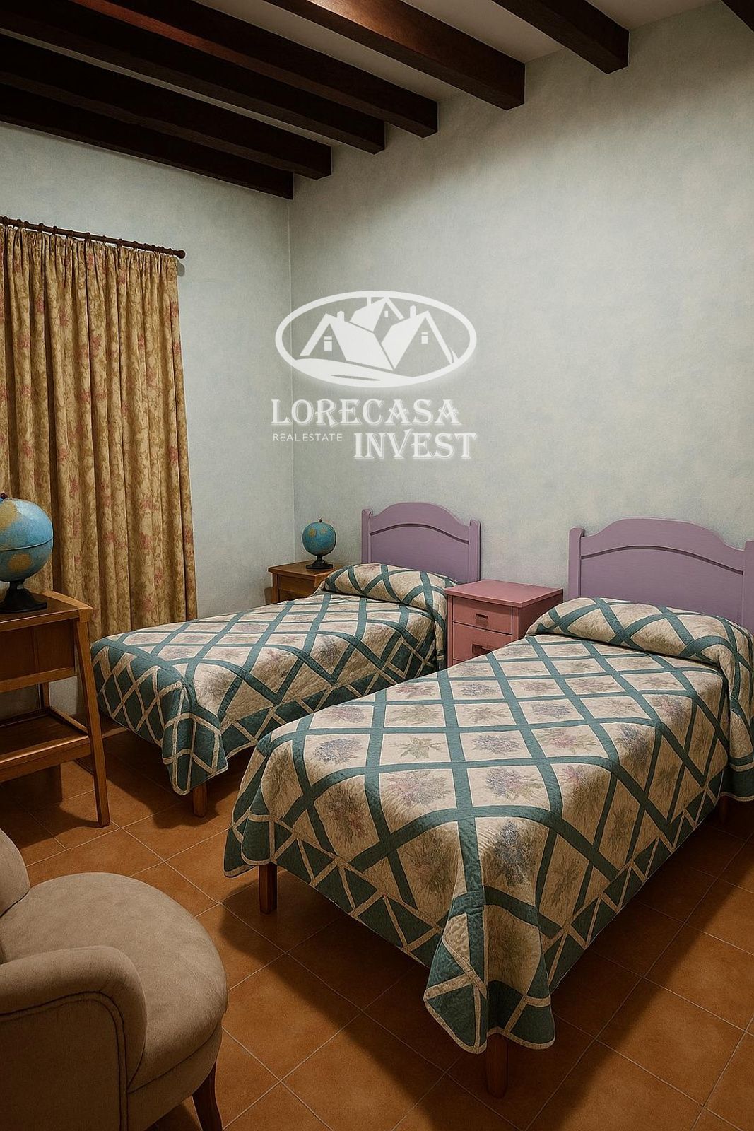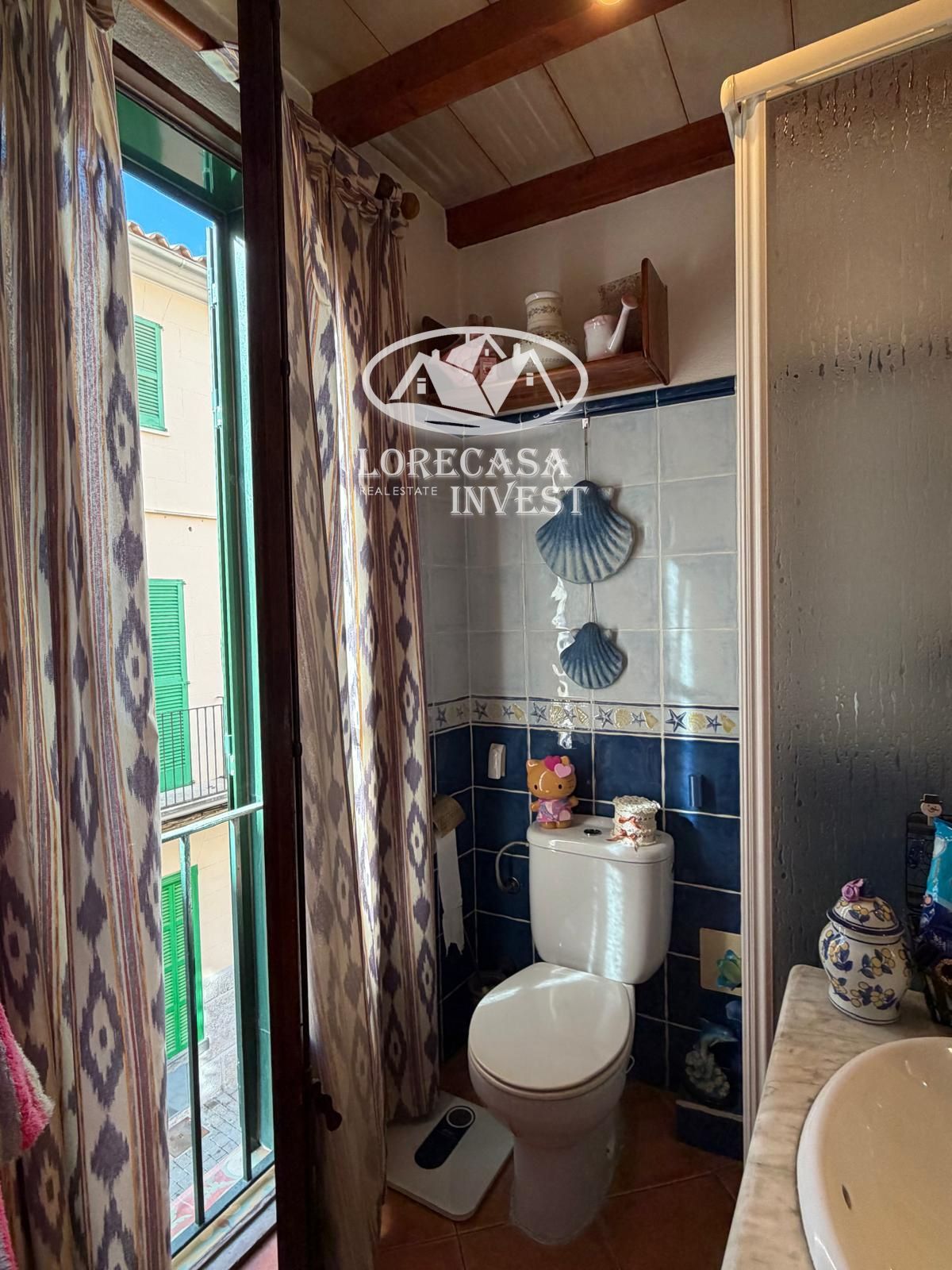 Conserva el encanto tradicional mallorquín con vigas vistas y chimenea.